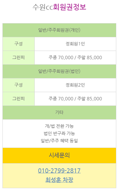 수원cc회원권 매물 안내입니다.