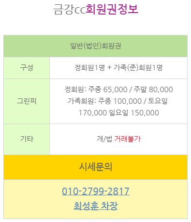 금강cc회원권 매물 안내입니다.