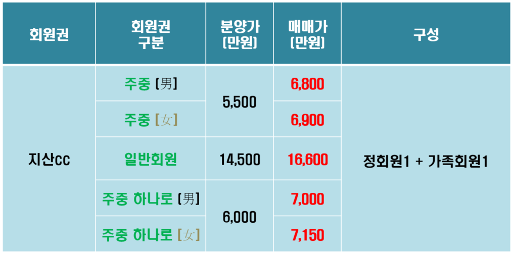 지산cc회원권 매물 안내입니다.