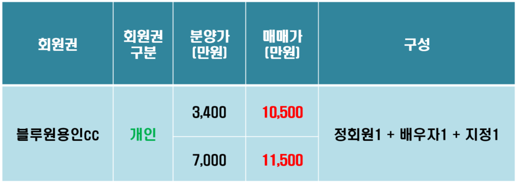 블루원용인cc 골프회원권 매매 시세 안내 (2019년 11월 13일 기준)