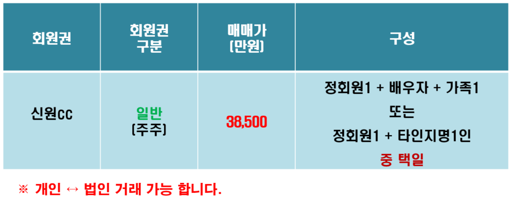 신원cc 골프회원권 매매 시세 안내(2019년 11월 18일 기준)