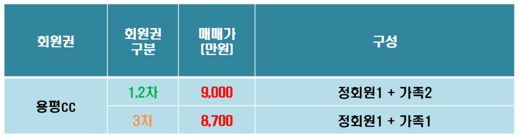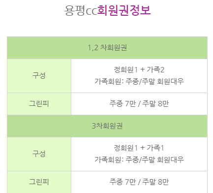 평창골프장 용평cc골프회원권 매매 시세 안내(2019년 12월 3일 기준)