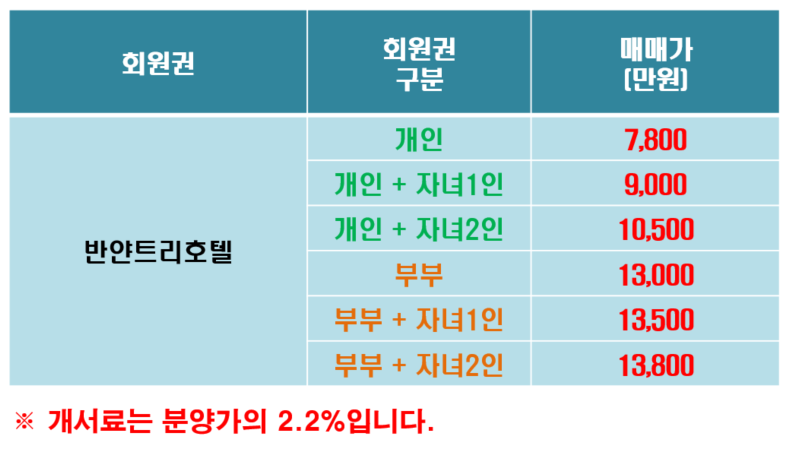 반얀트리호텔 회원권 시세 매매 안내(2019년 12월 5일)