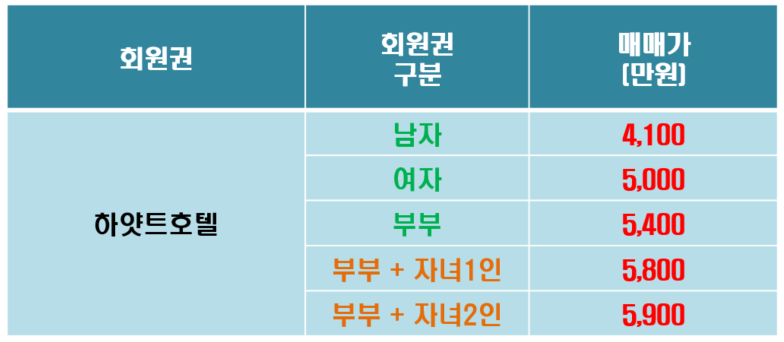하얏트호텔회원권 시세 매매 안내(2019년 12월 9일)