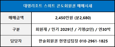 ◀ 대명리조트 스위트 매매가격 ▶