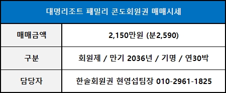 ◀ 대명콘도 패밀리 매매가격 ▶