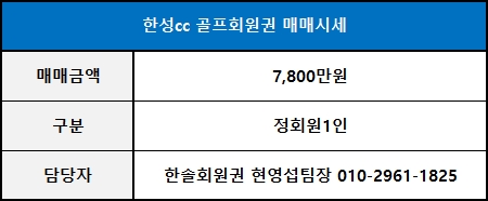 한성cc골프회원권 매매시세 (2019.12.12.) 안내