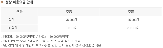 ▣ 한성cc 골프그린피 및 이용요금 안내 ▣
