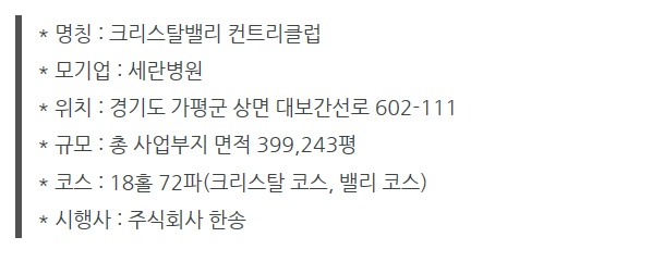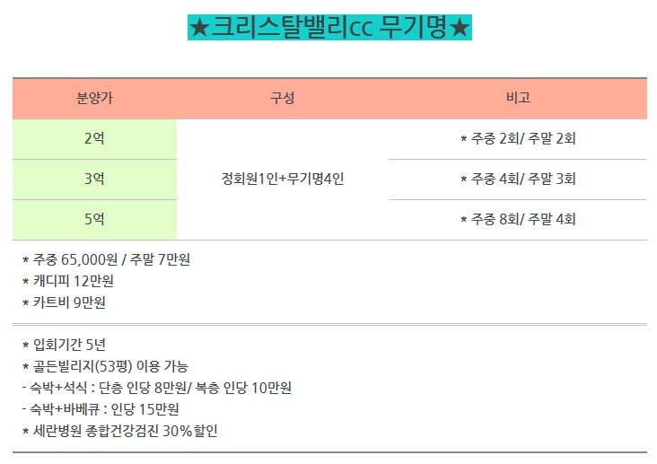 크리스탈밸리cc 무기명 분양 2억/3억/5억