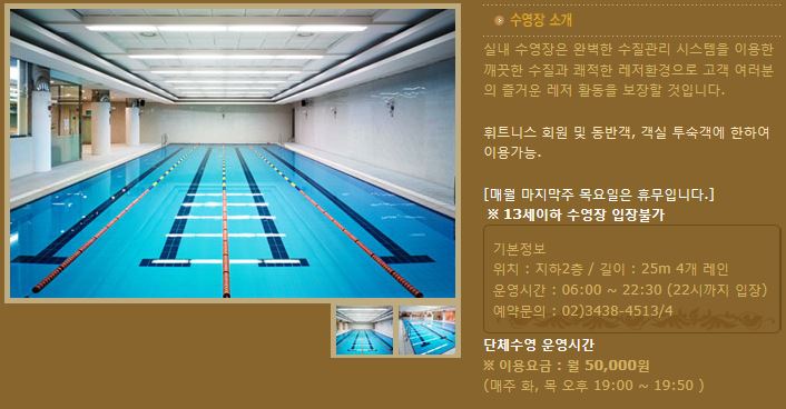 휘트니스 회원동반 및 투숙객 수영장 이용 무료