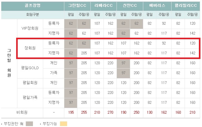 ▣ 그린힐cc 골프 그린피 안내 ▣