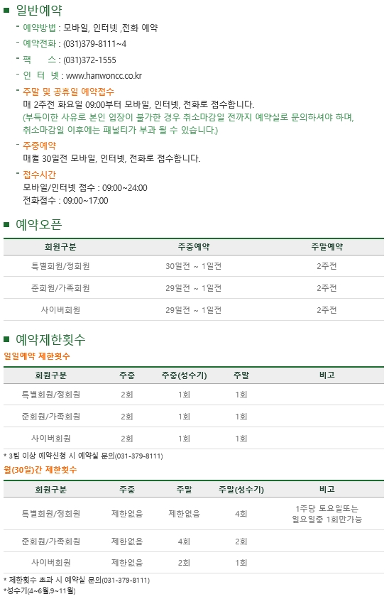 ▣ 한원cc 골프그린피 및 이용요금 안내 ▣