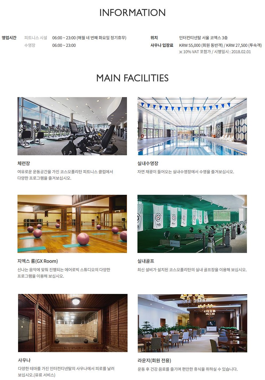 휘트니스 위치 : 코엑스인터컨티넨탈 3층