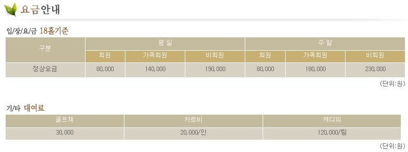 ▣ 제일cc 그린피 및 이용요금 안내 ▣