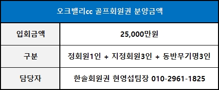 ◀ 오크밸리cc회원권 분양가격 ▶