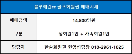 ◀ 블루헤런회원권 매매가격 ▶