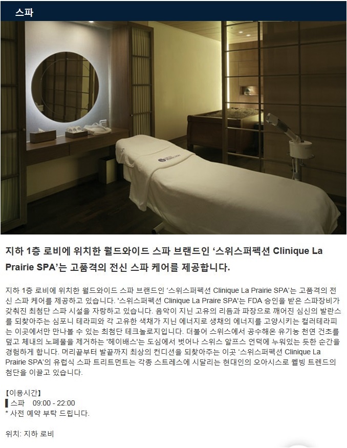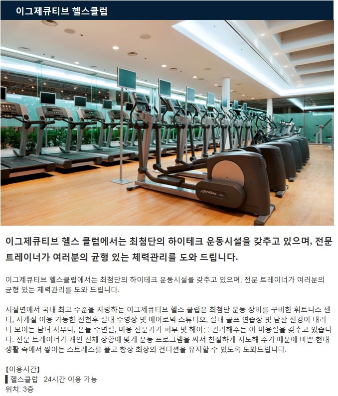 휘트니스 시설 : 실내수영장, 사우나, 스파, 체련장 등