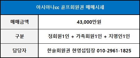 아시아나cc 골프회원권 법인회원권 매매시세 안내