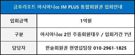 금호리조트 아시아나cc IM PLUS 통합회원권 신규분양 입회안내
