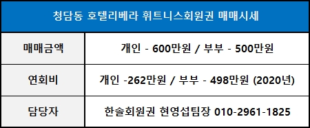 청담동 리베라호텔 휘트니스회원권 매매시세 안내
