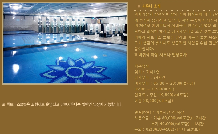 ▣ 청담동 호텔리베라 휘트니스 안내 ▣