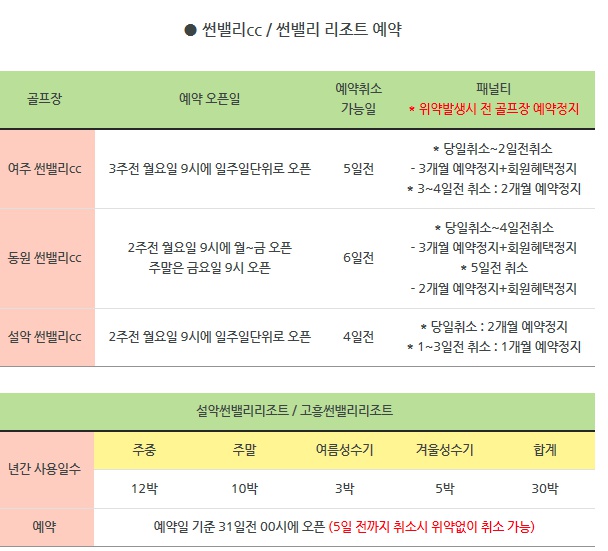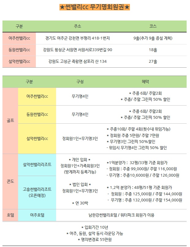 - 여주썬밸리cc, 동원썬밸리cc, 설악썬밸리cc 동시 라운딩 가능