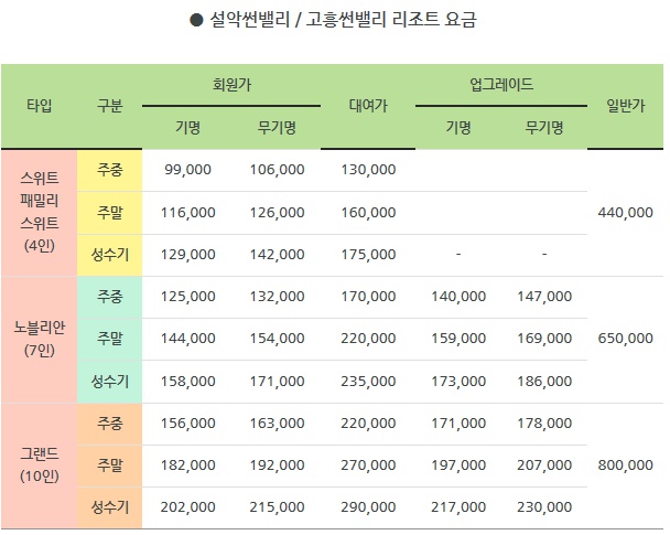 - 설악썬밸리cc의 경우 위임시 무기명4인은 그린피 50% 할인
