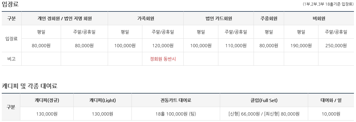 ▣ 중부컨트리클럽 골프 이용요금 안내 ▣