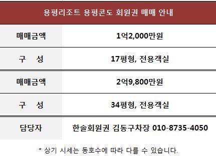 용평콘도 전용객실 회원권 안내입니다.