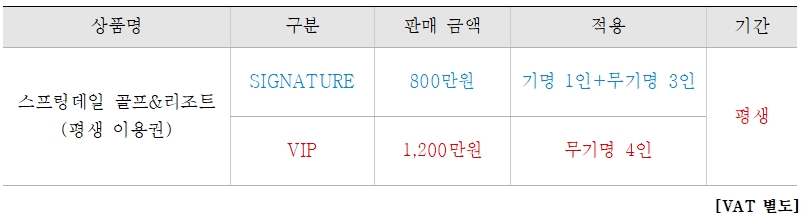 제주 스프링데일 골프&리조트 평생이용권 분양 안내