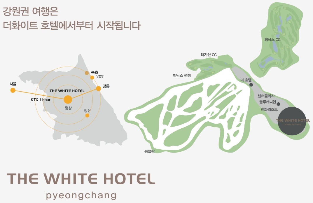☞ 평창 더화이트호텔은 강원도 평창군 '휘닉스파크 관광단지' 內에 위치하고 있습니다.