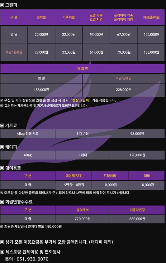 지정회원 그린피 주중 122,000원 주말 152,000원