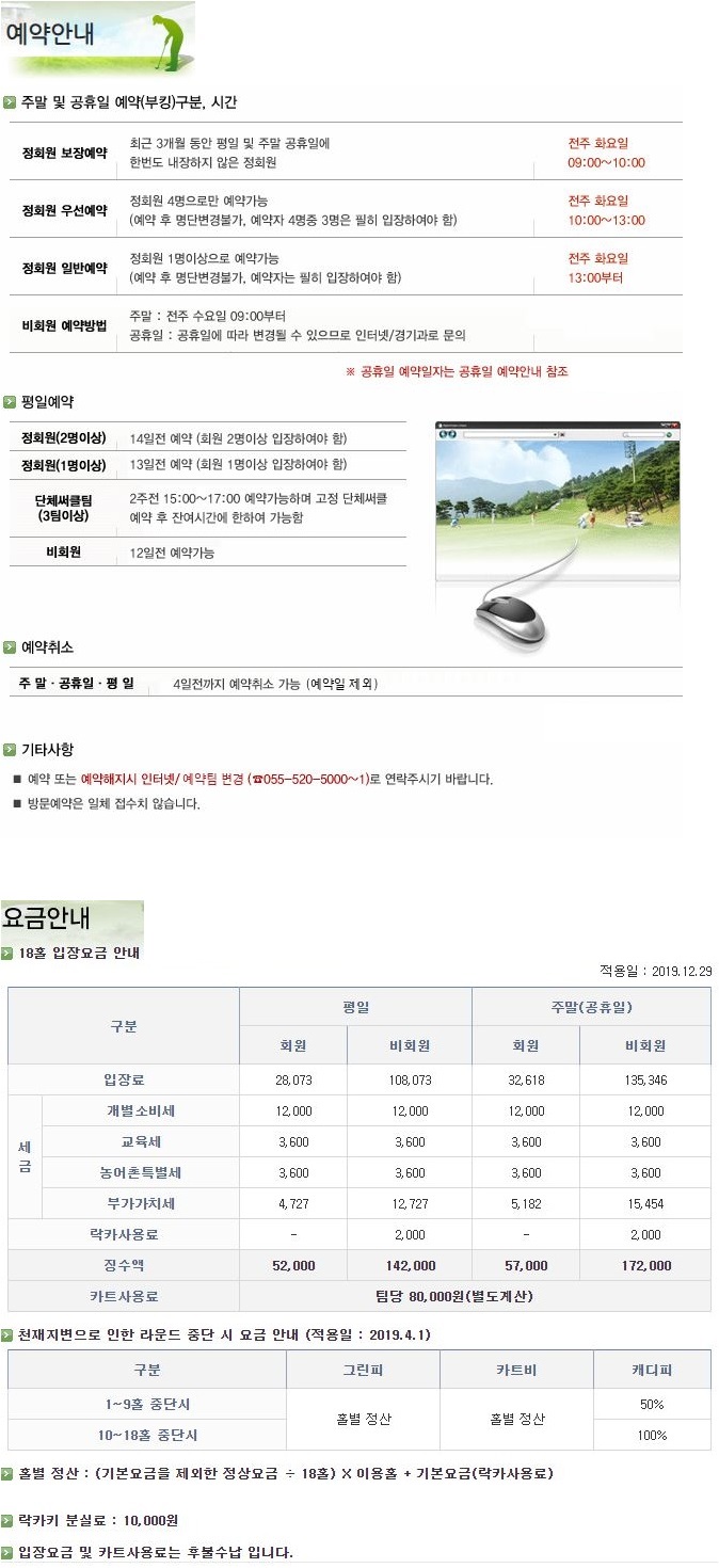 정회원 그린피 주중 52,000원 주말 57,000원