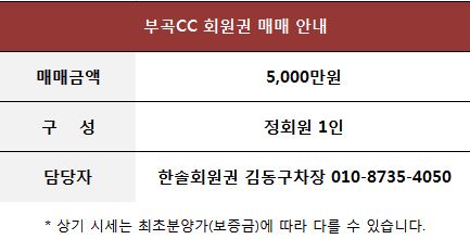 부곡컨트리클럽 회원권 매매 안내