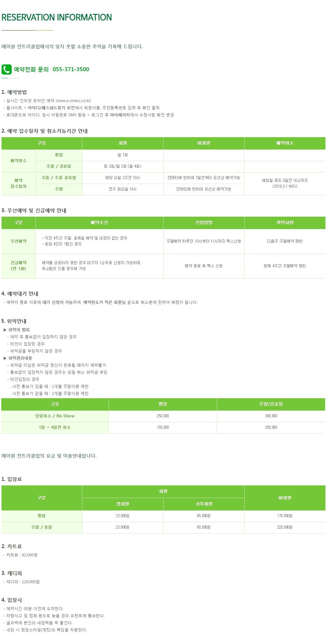 정회원, 지정회원 동반 전원 주중 65,000원 주말 80,000원