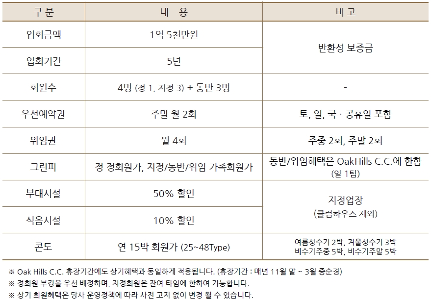 ■ 원주 오크힐스cc 무기명회원권 입회안내 ■