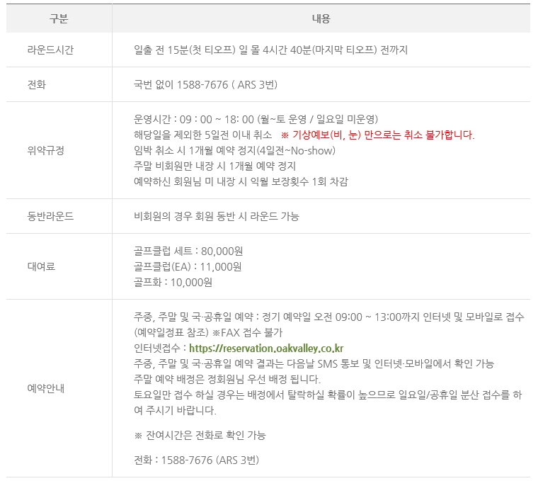 - 오크힐스cc 1일 1팀 이용가능