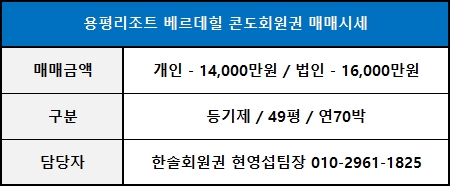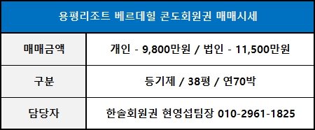 용평베르데힐 38평/49평 콘도회원권 매매시세 안내