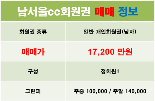 남서울cc회원권 정보 및 시세 거래방법 안내