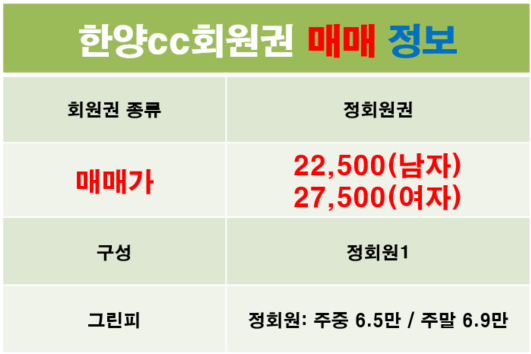 한양cc회원권 정보 및 최근시세 거래방법 안내