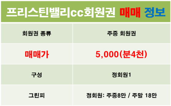 프리스틴밸리cc회원권 매물 안내(2020.06.05기준)