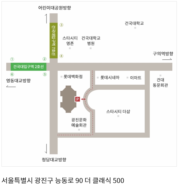 ☞ 더클래식500 펜타즈 휘트니스클럽은 서울 광진구의 랜드마크로 건대입구역 사거리에 위치해 있습니다.