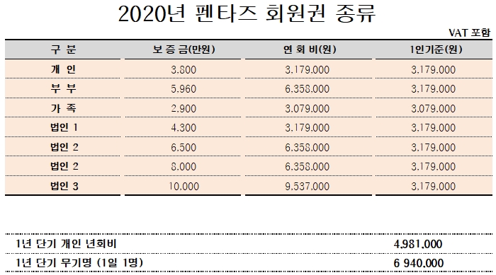 ◀ 더클래식500 펜타즈 피트니스클럽 입회금액 ▶