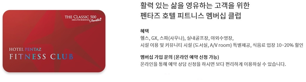 더클래식500 펜타즈호텔 휘트니스 멤버쉽 회원권 입회 안내