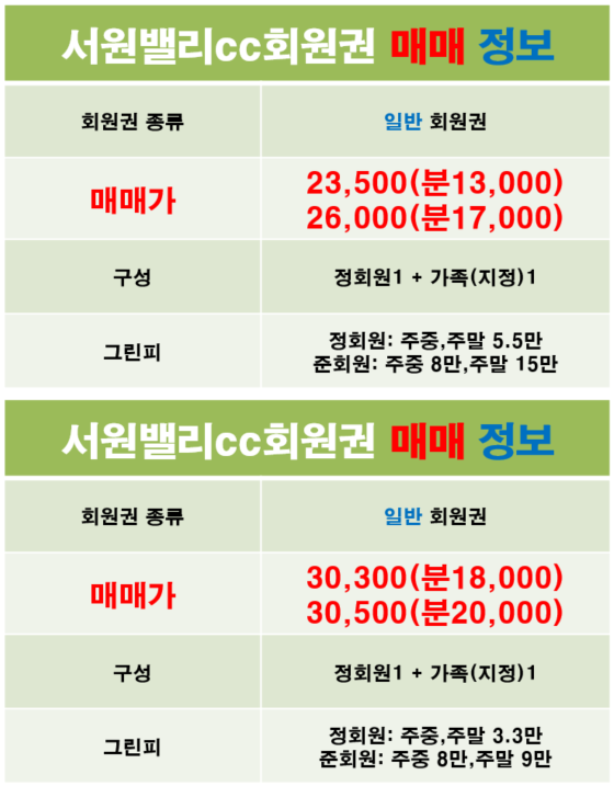 서원밸리cc회원권 매물 안내(2020.06.10기준)