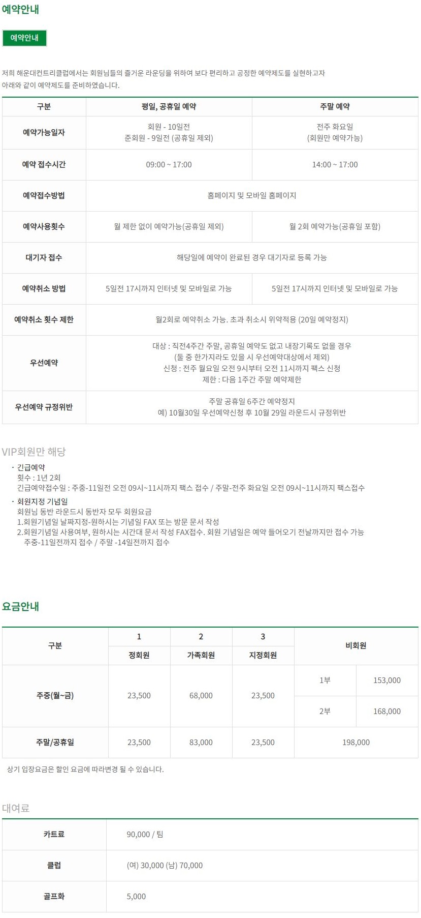 지정회원 및 무기명카드 소지자 그린피 주중 주말 33,500원