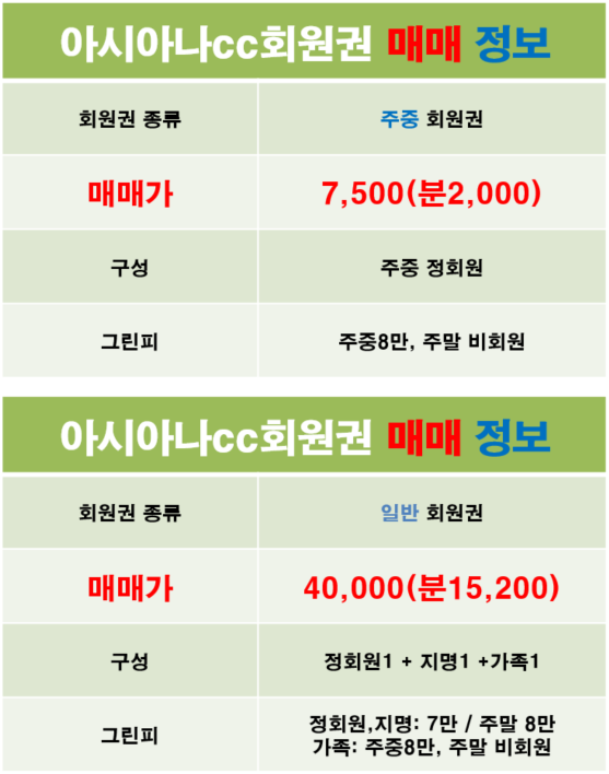 아시아나cc회원권 매물 안내(2020.06.11기준)