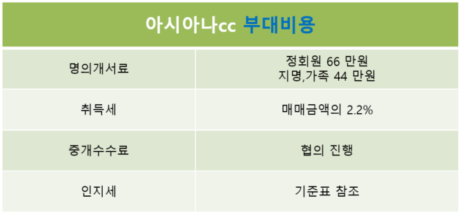 아시아나cc회원권 정보 및 최근시세 거래방법 안내